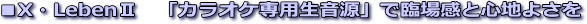 JOYSOUNDが開発したカラオケ専用生音源「X-Leben」 日本フィルハーモニー交響楽団 に新たな生音源を追加した「X-LebenⅡ」を搭載。 日本フィルハーモニー交響楽団が擁する世界で活躍す る奏者の演奏を音源化し、自社スタジオでピアノ・ギ ター・ドラム等を新規追加。生楽器音色のクオリティ向上 に加え、最新のPOPSで使われている音源バリエーショ ンや現代的なエフェクトも追加。歌いやすさが更にアッ プしました。