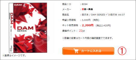 商品ページの@[カートに入れる]ボタンをクリックすることで、商品をお選びいただけます。1回のお買い物で、いくつ商品をお選びいただいても結構です。