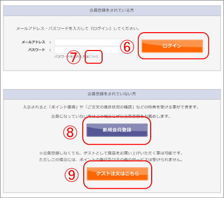 会員登録されない方は、H[ゲスト注文はこちら]ボタンをクリックします。