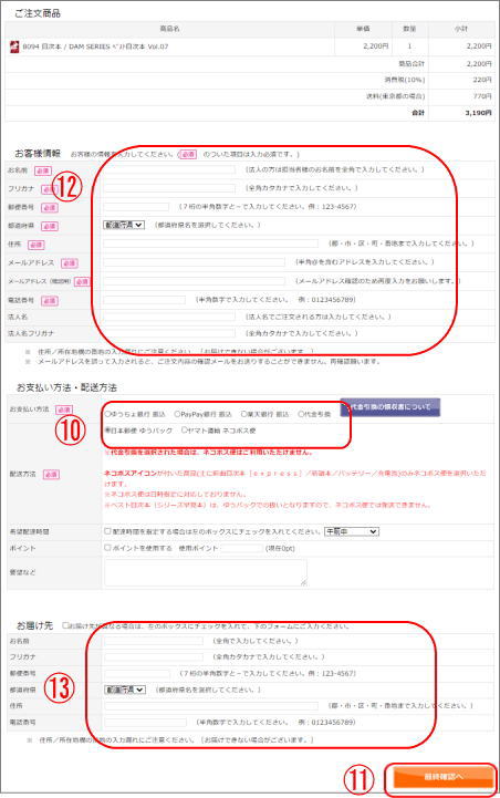 すべての内容に間違いがなければ、D[ご注文手続きへ]をクリックしてください。